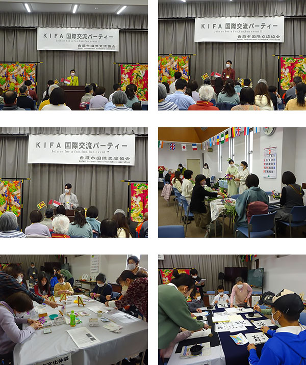 日本文化を通して外国人と交流しようと、KIFAは、市内で市民参加型の体験イベント「第8回KIFA国際交流パーティー2017」を開きました。参加した約100人(KIFA会員を含む)の地域住民や外国人の皆さんが、一緒に日本文化などを体験しながら、国籍の垣根を越え親睦を深めていました。参加者は書道や茶道、ちぎり絵を体験したり、つきたての餅料理を食べたりして、会話を弾ませながら交流していました。